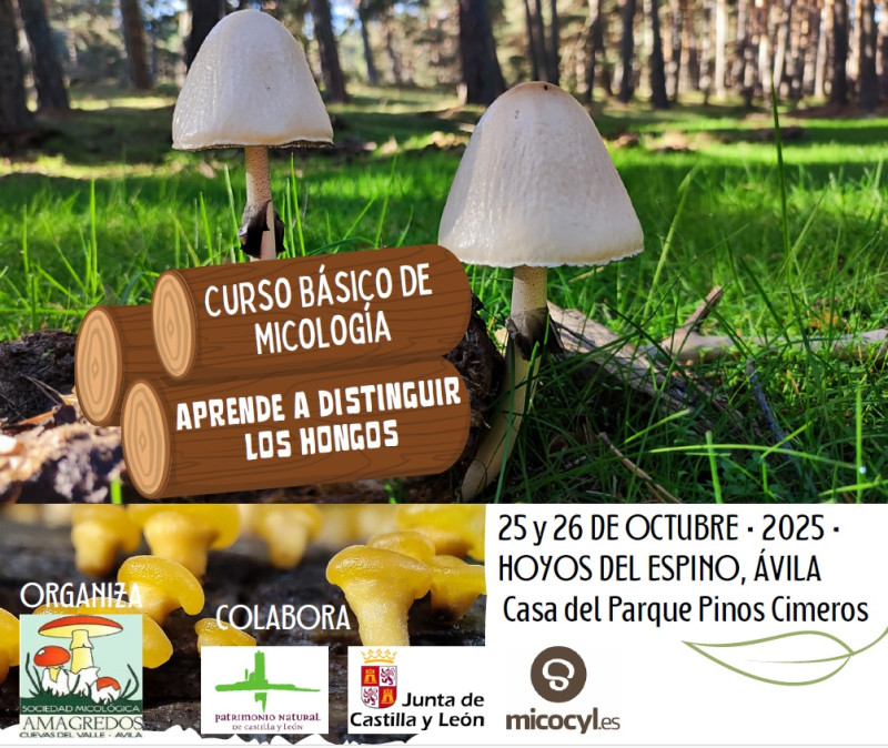 La Sociedad Micológica Amagredos organiza un Curso Básico de Micología para aprender a distinguir las setas, tanto las comestibles como sus peligrosas parecidas tóxicas, y conocer la importancia de los hongos en la naturaleza. El curso tendrá lugar los días 25 y 26 de octubre de 2025 en Hoyos del Espino, Ávila, concretamente en la Casa del Parque Pinos Cimeros.